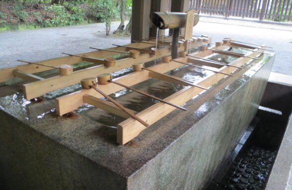 手水舎の清水で清めることを「手水を取る」と称し、禊の略儀になります。