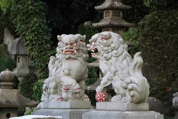 全ての存在を無条件に愛する真の和の心を育てる道は、まず全ての生き物を愛することから始まります。狛犬はその道のりを見張っているのです。